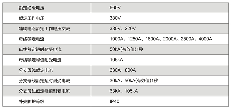二、君源电力GCK低压抽出式开关柜技术参数:
